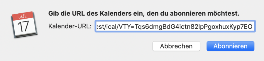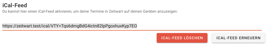 Der iCal-Feed muss von dir aktiviert werden, damit du deine Termine abrufen kannst, es wird dann eine zufällige URL für deinen Kalender generiert: