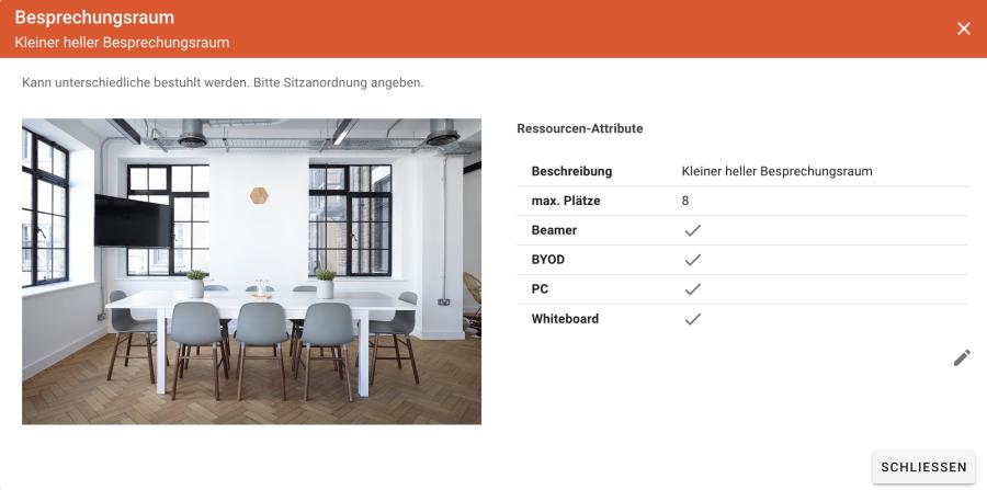 Es öffnet sich ein Dialogfenster, in dem die Attribute des Raums übersichtlich dargestellt werden.