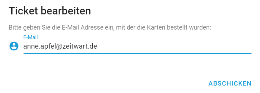 Aus der E-Mail heraus kann Anne nun über "Ticket bearbeiten" jederzeit ihre Buchung ändern oder stornieren. Sie muss dafür lediglich die verwendete E-Mail-Adresse eingeben: