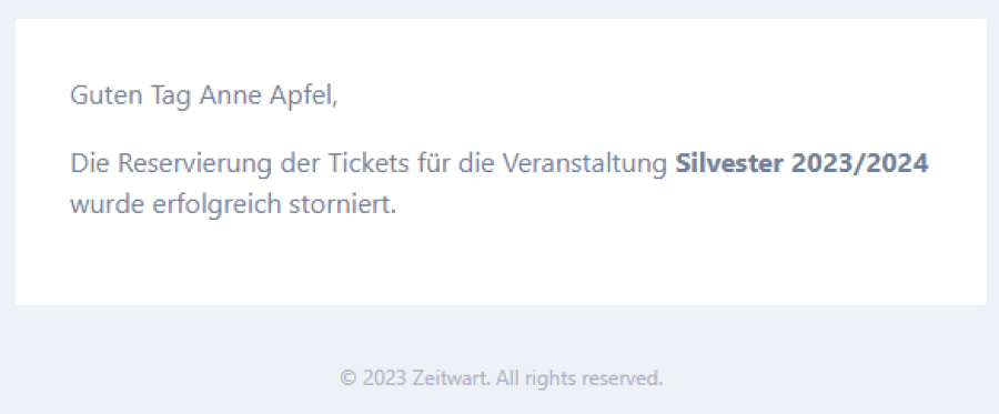 Anne bekommt im Anschluss eine E-Mail, in der die Stornierung bestätigt wird: