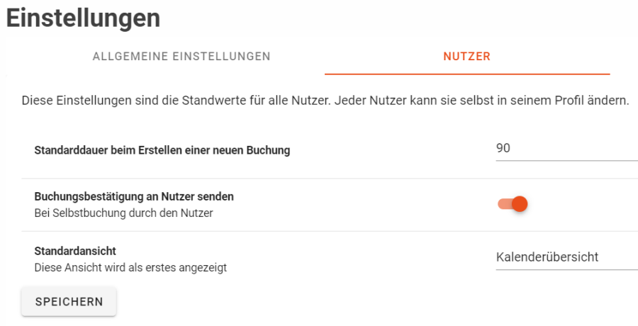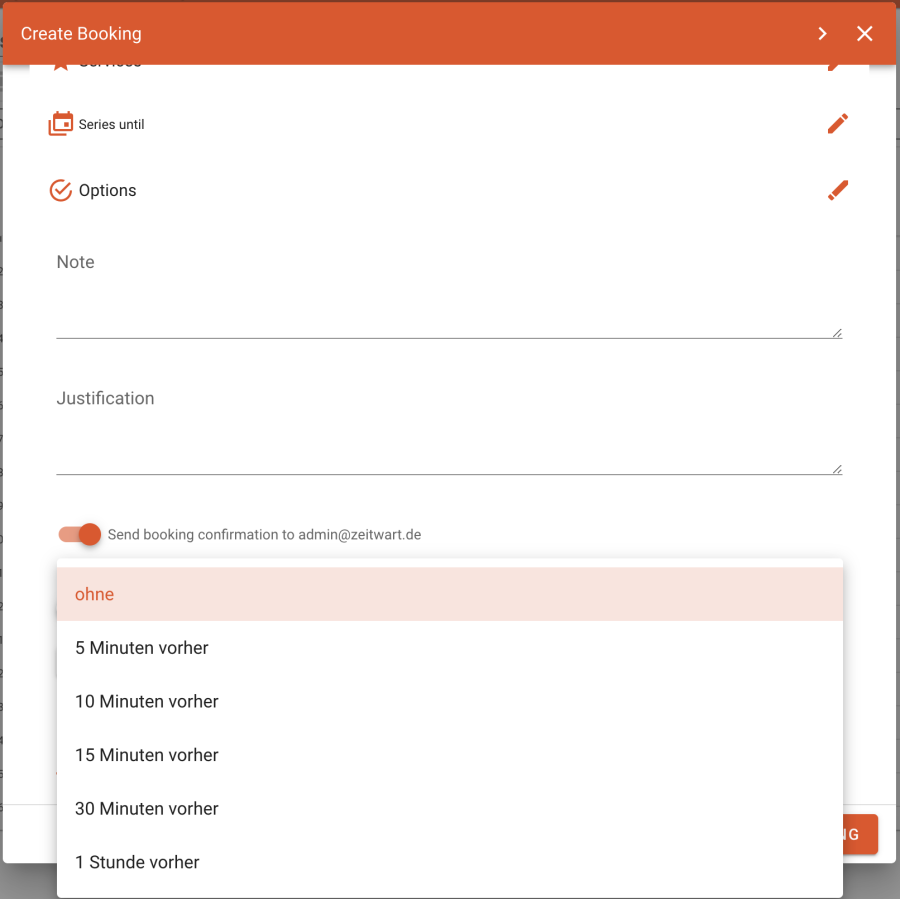 Users can make a number of default settings in their profile under "Settings" in Zeitwart to speed up booking processes and customise their user experience. Among other things, users with administrative rights can set whether emails are sent by default for external bookings.