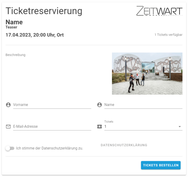 Das von Zeitwart bereitgestellte Ticketsystem bietet damit eine schnelle, zeitgemäße Lösung zur Buchung von Veranstaltungen.